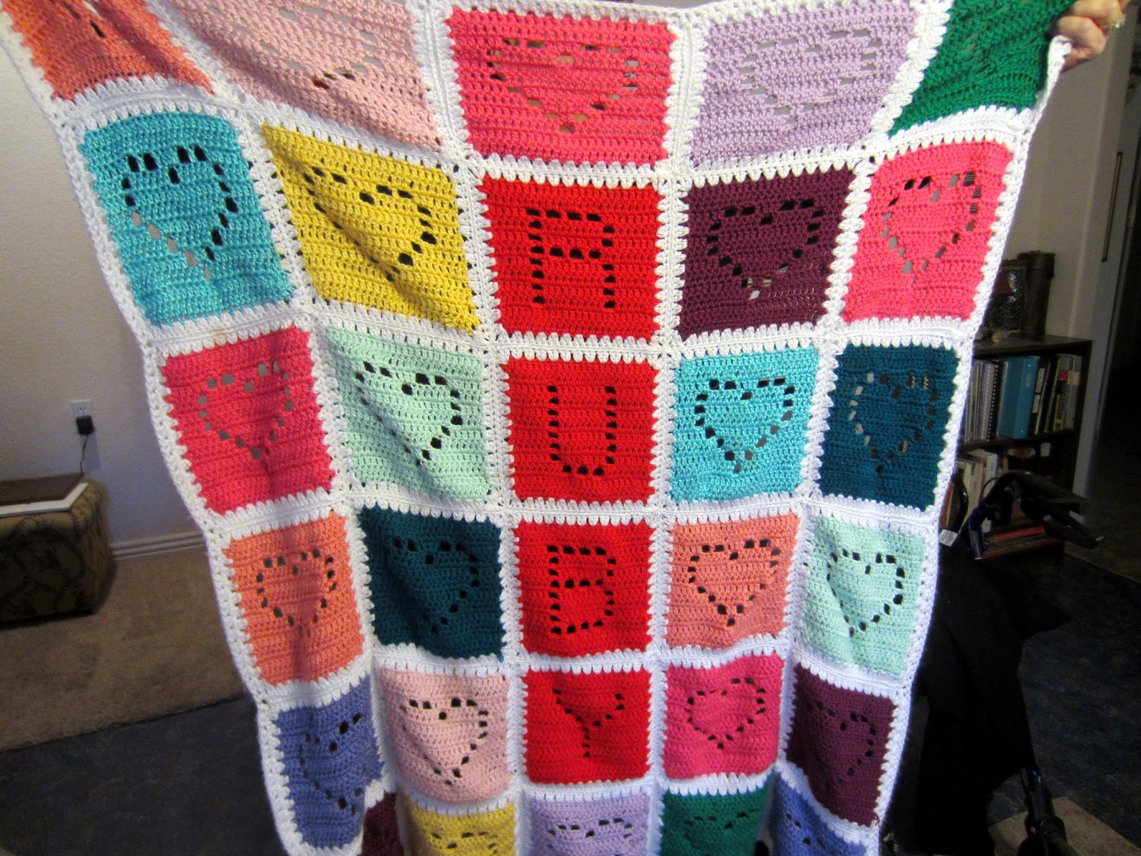 Donna showed the afghan that Mary Ellen made for Ruby. Great crocheted hearts!